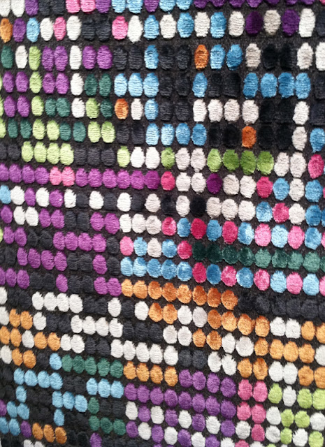 I was most impressed with the various rugs and wallpapers. So many colors and textures! Check out the recycled jeans rug, the hot pink fur rug and the yellow sparkle wallpaper! Fun!